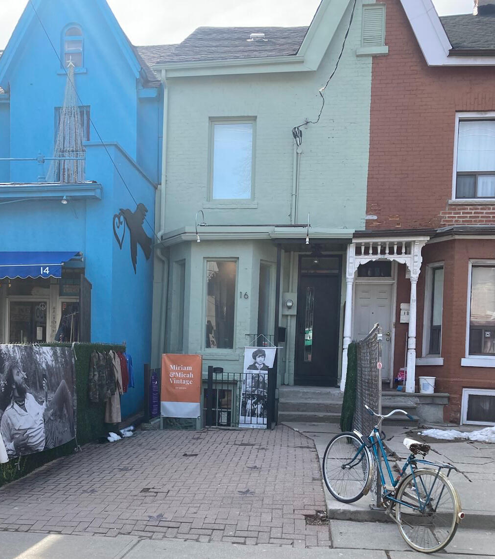 Miriam and Micah Vintage is an authentic vintage clothing and jewellery boutique, situated within in a tall pale green Victorian house at 16 Kensington Avenue in old Kensington Market in Toronto.